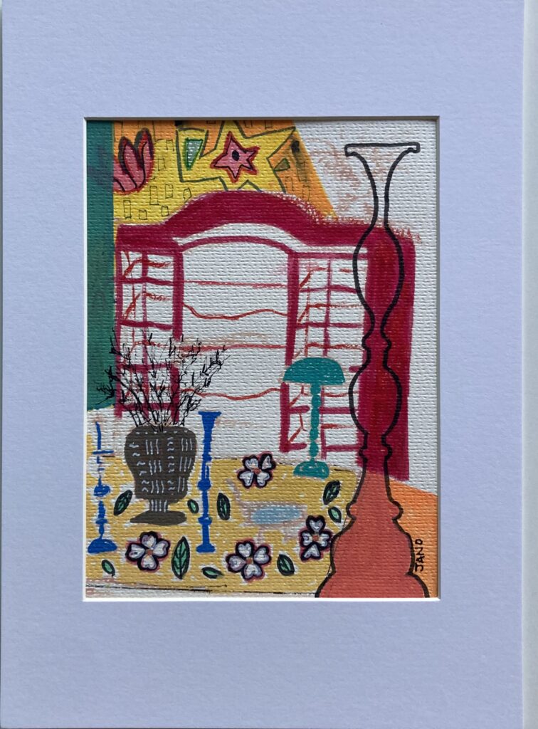 If they are not there, just contact me at janmosullivan@gmail.com and I’ll give you the details of where to view and how to buy. My Interiors Themed artworks are in the separate menu item INTERIORS